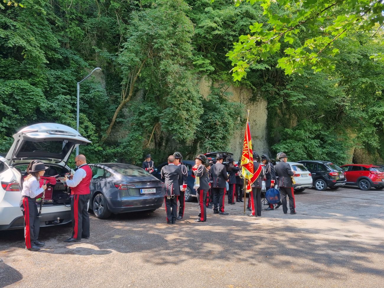 Treffpunkt der Bürgermusik Hard ist der Parkplatz am Gebhardsberg